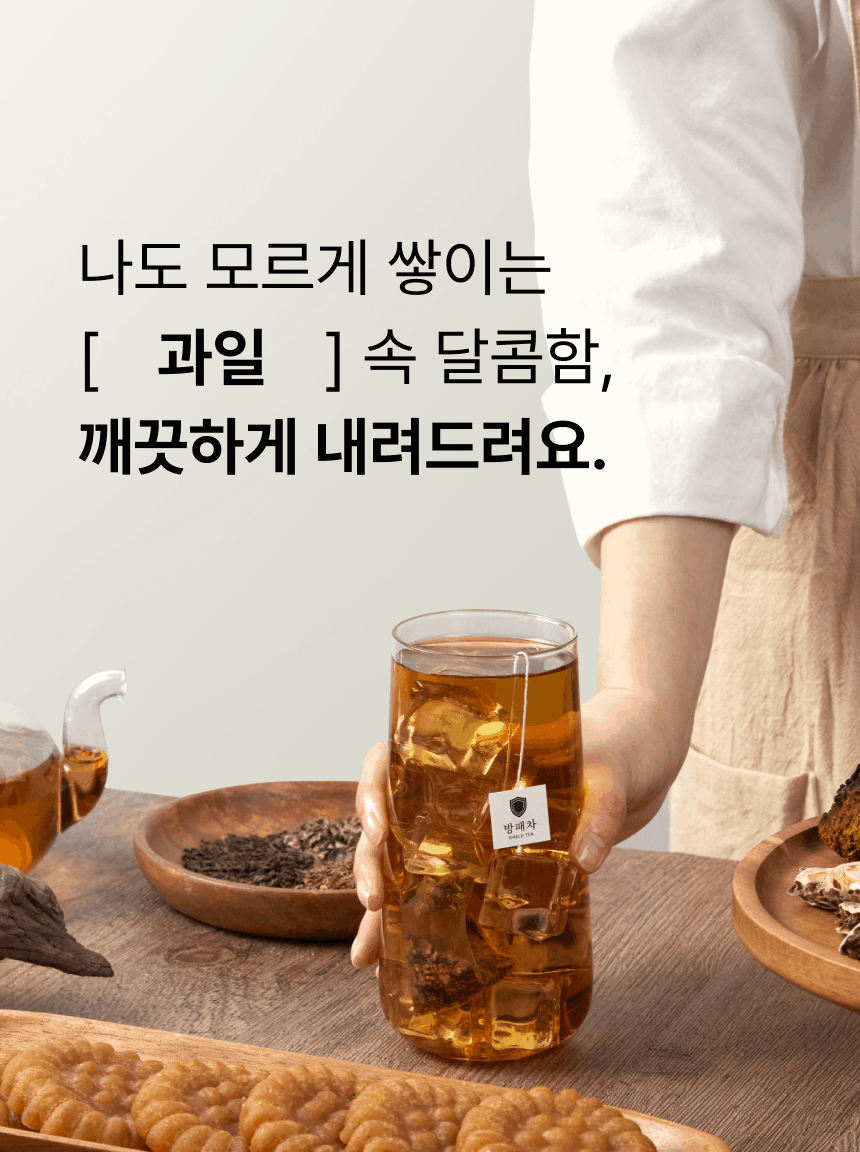 돼지감자 (국내산) 40%, 여주 (국내산) 25%, 바나바잎 (인도네시아산) 25%, 수국잎 (국내산) 10%